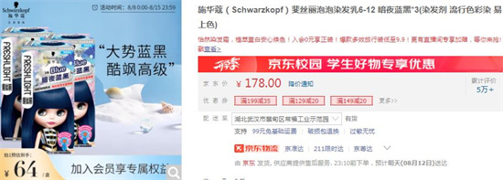 1、施华蔻泡泡染蓝黑色3盒——178元