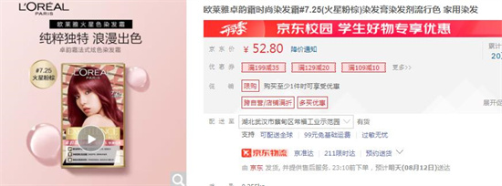 2、欧莱雅卓韵霜染发霜火星粉棕——52.8元