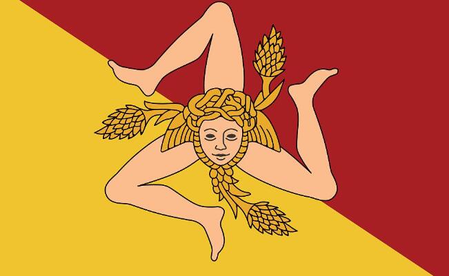 西西里岛的国旗一眼看过去简直让人掉san,在旗子的正中间有一个人头,人头包围着一圈麦穗,而人头生长了三条腿,这三条腿都呈现出弯折的状态,简直太吓人了。