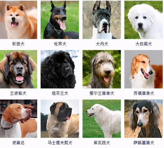 3,大型犬:金毛,阿拉斯加,拉布拉多,苏牧,德牧,古牧,大白熊,罗威纳,藏獒,斑点狗,杜宾,秋田,伯恩山,高加索牧羊..圣伯纳,阿富汗灵缇,纽芬兰犬,大丹,中亚牧羊犬,拳师,杜高,可蒙犬,万能梗,巴西獒,巨型雪纳瑞,獒犬,兰西尔犬,兰伯格犬。