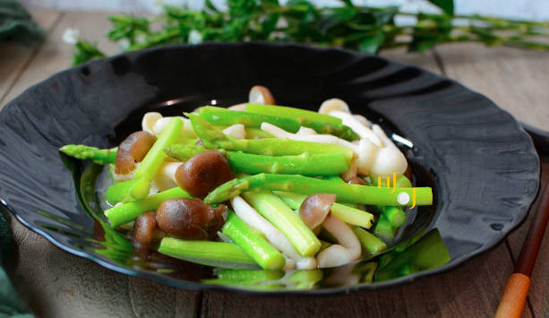 洋菇中含有大量的维生素,和芦笋爆炒简直就是绝配,将洋菇切成和芦笋一样大小。切几个蒜沫备用,烧油加入蒜末爆香,加入芦笋飘出香味后加入洋菇,进行翻炒加入蚝油,鸡精均匀翻炒,出锅就可以了。