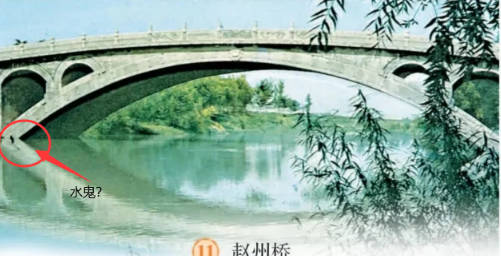 有网友反馈三年级下册语文书闹鬼,第11课赵州桥,第40页,桥底靠近水边的地方一个黑色水鬼!小编查看后,这个黑色物体并非水鬼,而是石头,现在小学课本审核严格,不会出现这种情况的。