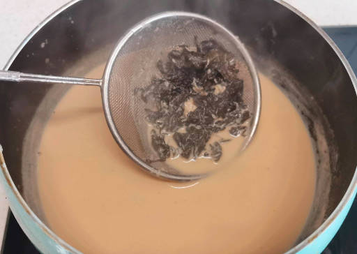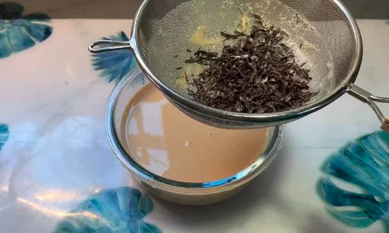 1. 先将茶叶用热水冲泡,浸泡 3 至 5 分钟,然后用过滤器或茶叶过滤器过滤出茶叶渣,备用。