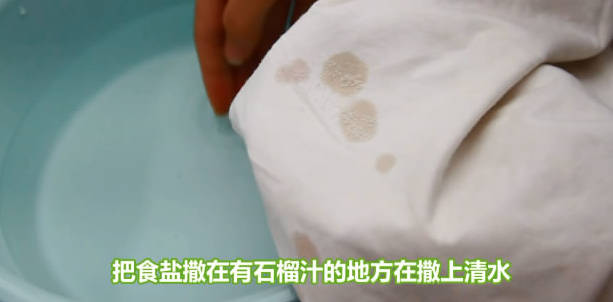 1、如果石榴汁是刚掉在衣服上的,一定要马上清洗,你可以放一丢丢盐或小苏打撒在污渍上,静置1-2分钟,然后用肥皂搓洗,最后用清水冲洗一遍就好了。