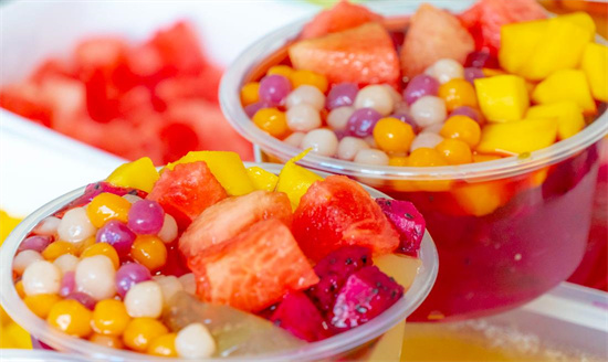 我们加水果,可以选择草莓、蓝莓、西瓜、葡萄等等,根据你的口味调整就好。